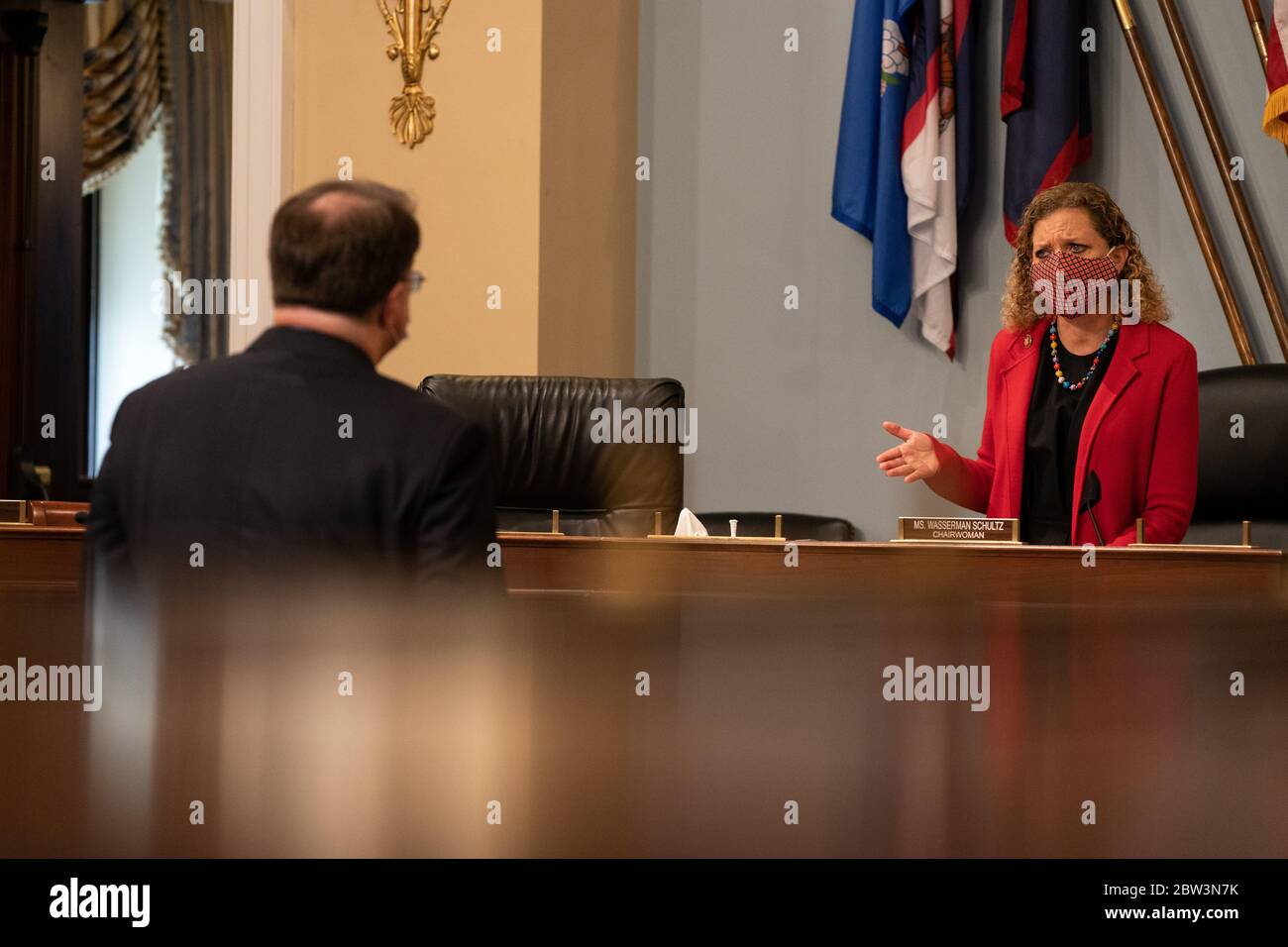 Chairwoman United States Representative Debbie Wasserman Schultz Democrat Of Florida Right Speaks With Us Secretary Of Veterans Affairs Va Robert Wilkie Left Before The Start Of A Hearing With The Us House