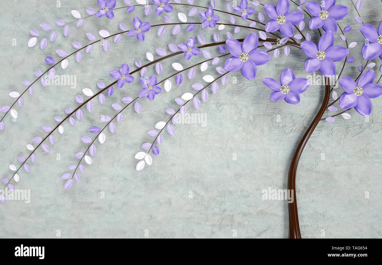 Arbol Con Flores Purpura Sobre Un Fondo Vintage Rosa Wallpaper 3d Fotografia De Stock Alamy