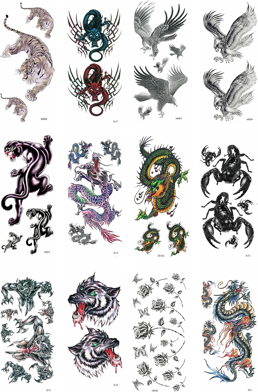 Amazon Com 10 Sheets Dragon Wolf Boy Men Temporary Tattoo Arm Forearm Hand Clothing