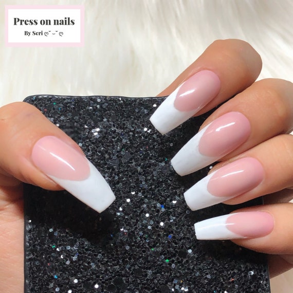 Deep Round French Gel Nails Hand Painted Press On Nails Etsy
