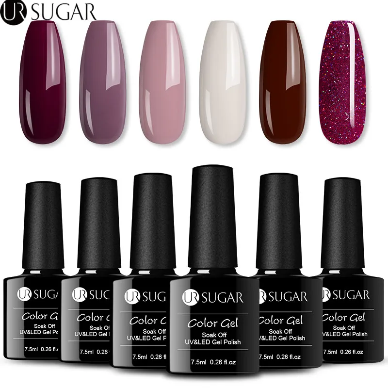 Ur Sugar 6pcs Set Uv Gel Nail Polish Kit Top Base Varnish Semi Permanant Uv Lamp Soak Off Gel Lacquer Manicure Nail Tools Set Aliexpress