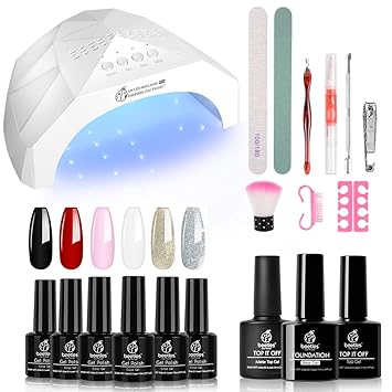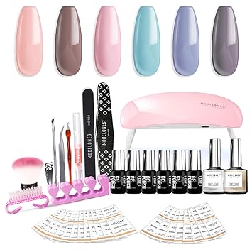 Amazon Com Gel Nail Polish Kit With U V Light 48w Led Nail Lamp Modelones 7 Colors Shellac Gel Nail Polish Set Base Top Coat Nail Primer Nail Art Decorations Home Diy