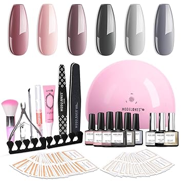 Amazon Com Gel Nail Polish Kit Modelones Gel Nail Polish Kit With U V Light 48w Nail Lamp 6 Nude Grey Pink Gel Nail Polish Set Matte Gel Top Coat Gel Base And