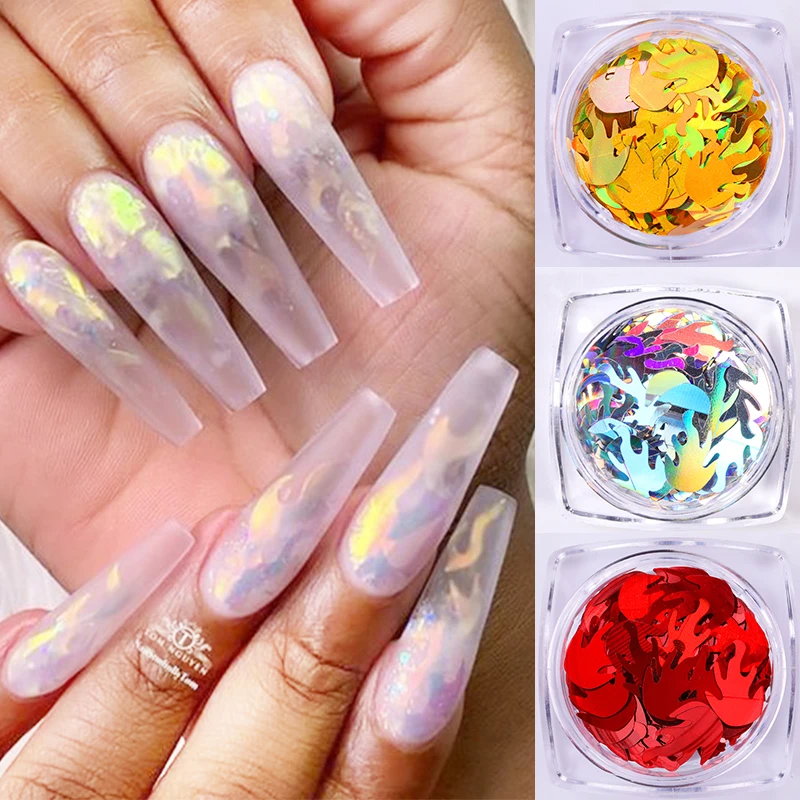 1 Box Chameleon Laser Multicolor Sequins Nail Art Glitter Flakes Fire Maple Shape Uv Gel Polish Tool Decoration Rhinestones Decorations Aliexpress