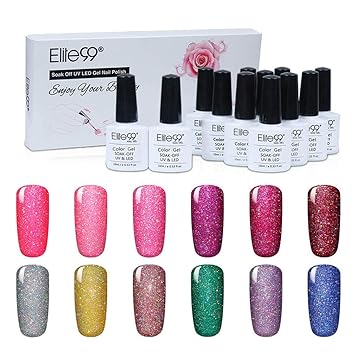 Amazon Com Elite99 Soak Off Uv Led Gel Polish Bling Neon Color Nail Varnish Manicure Pedicure 10ml 12 Colors Beauty