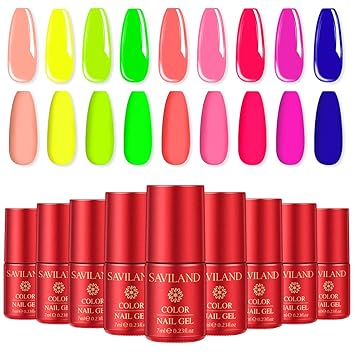 Amazon Com Saviland Gel Nail Polish Set Neon Gel Nail Green Red Yellow Purple Pink Blue Soak Off Nail Polish Starter Kit Beauty