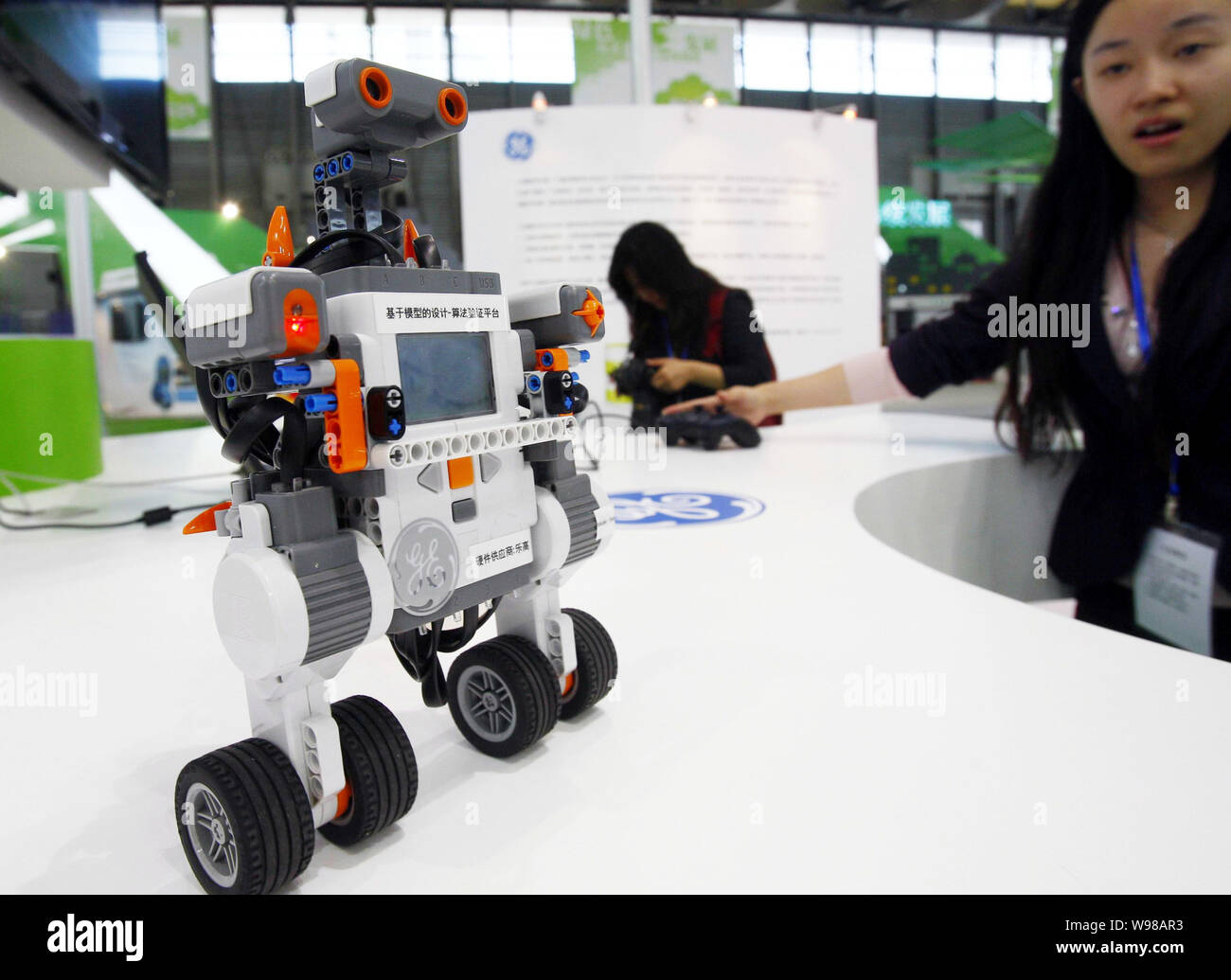 An Employee Remote Controls A Robot At The Stand Of Ge General Electric During The 2011 China International Industry Fair In Shanghai China 31 Oct Stock Photo Alamy