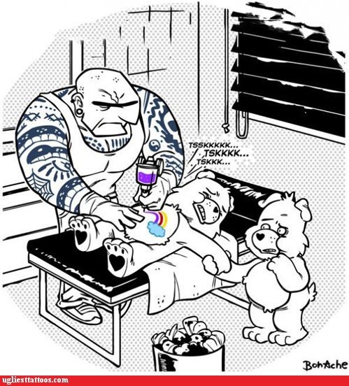So That S How Care Bears Get Their Belly Art Ugliest Tattoos Funny Tattoos Bad Tattoos Horrible Tattoos Tattoo Fail