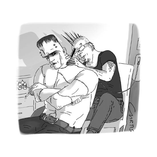 Frankenstein S Monster Getting Seam Tattoos New Yorker Cartoon Premium Giclee Print Kate Curtis Allposters Com