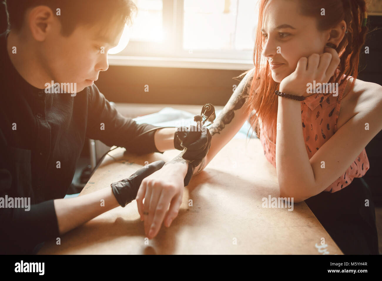 Pretty Girl Getting A Tattoo Stock Photo Alamy