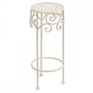 Suport Ghiveci Alb Din Metal Decorat Cu Frunze Si Flori