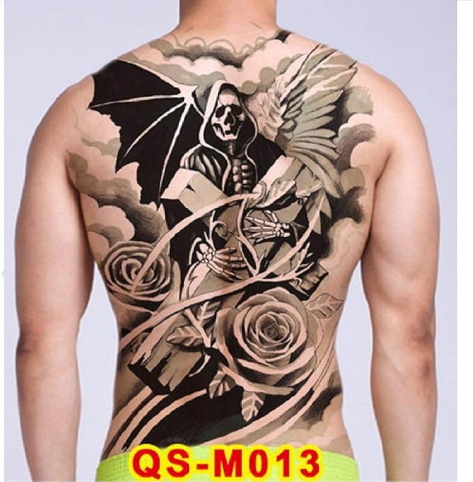 Tatuaje Temporal Pegatinas Del Cuerpo De Transferencia Full Back Gran Demonio Craneo Cruz Tatuaje Gotico Para Mujeres Hombres Ninos Brazo Pierna Pecho Cintura Cuello Tatuaje Seguro Non Toxics Extr Amazon Es Deportes Y Aire Libre