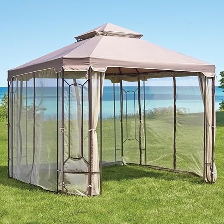 Hampton Bay Turnberry 10 Ft X 12 Ft Gazebo Mosquito Netting W Private Curtain Brickseek