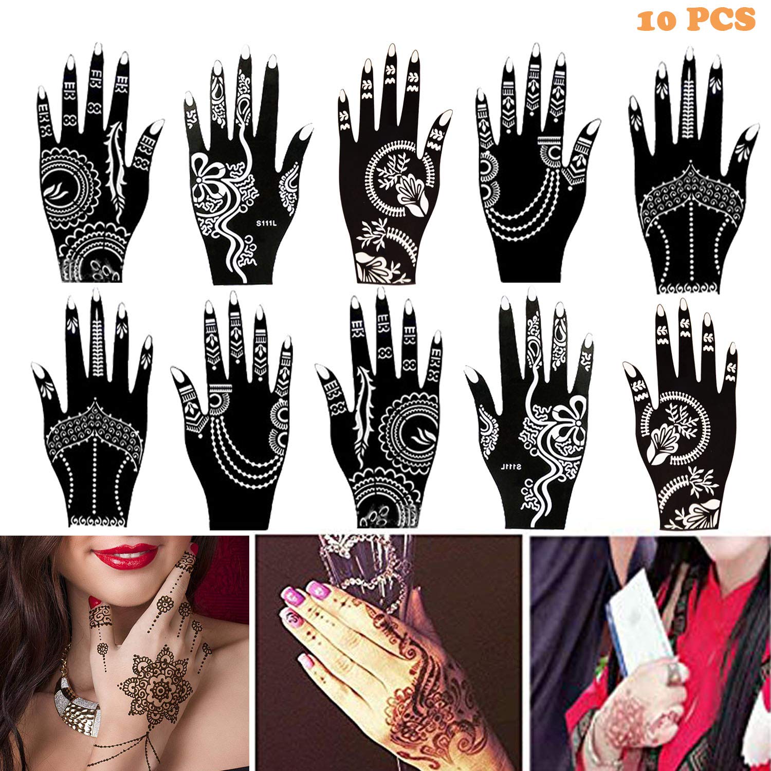Amazon Com Henna Tattoo Stencil Templates Temporary Tattoo For Women Girls Indian Arabian Tattoo Reusable Stickers Stencils Self Adhesive Beautiful Body Art Designs For Hands 10 Sheets Beauty