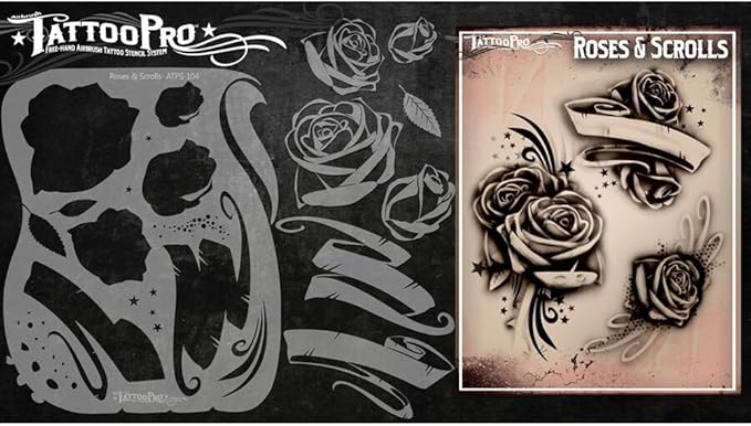 Amazon Com Tattoo Pro Airbrush Stencil Series 1 Roses Scrolls Mylar Airbrush Tattoo Template Reusable Face Paint Stencil Arts Crafts Sewing