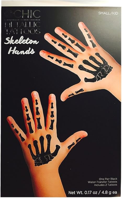 Amazon Com Halloween Tattoos Gothic Glam Skeleton Hands Sm Kids In Black Everything Else