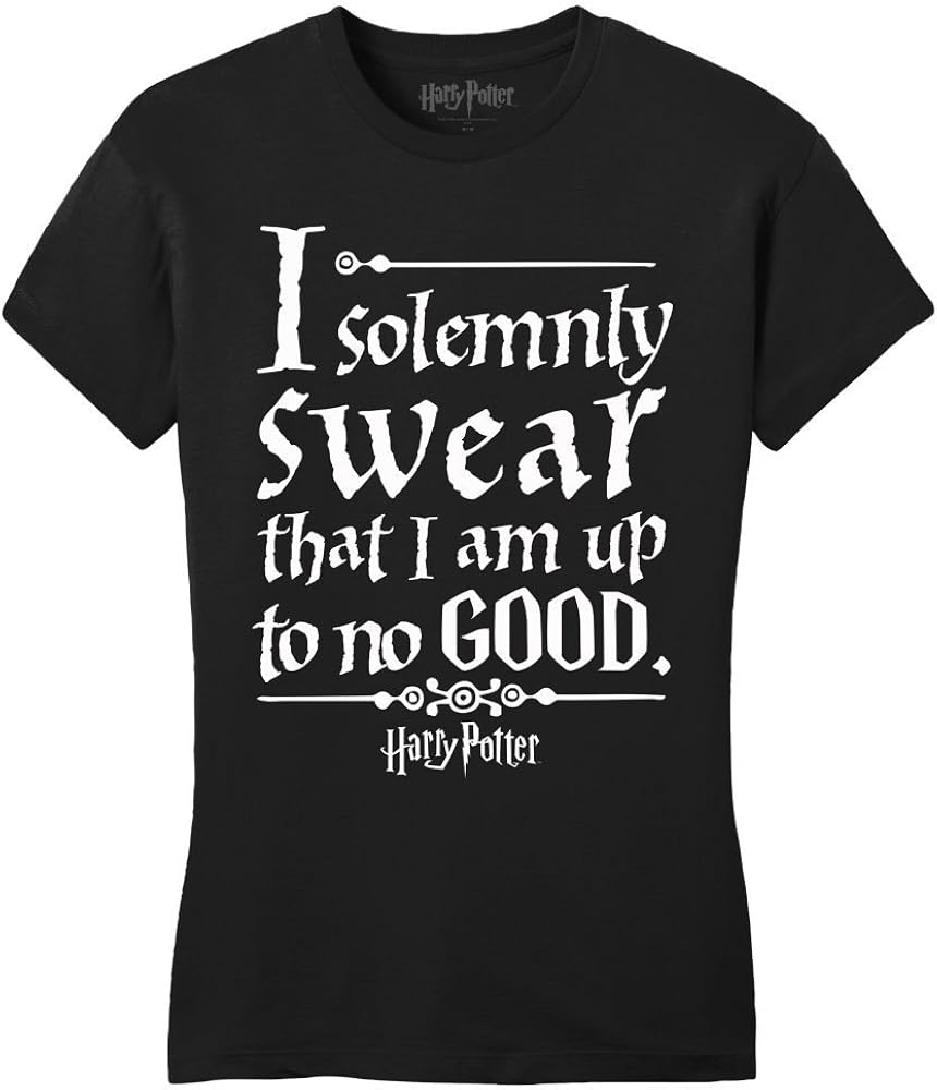 Amazon Com Harry Potter The Marauder S Map Phrase I Solemnly Swear That I Am Up To No Good Women S Black Tee T Shirt Shirt Clothing