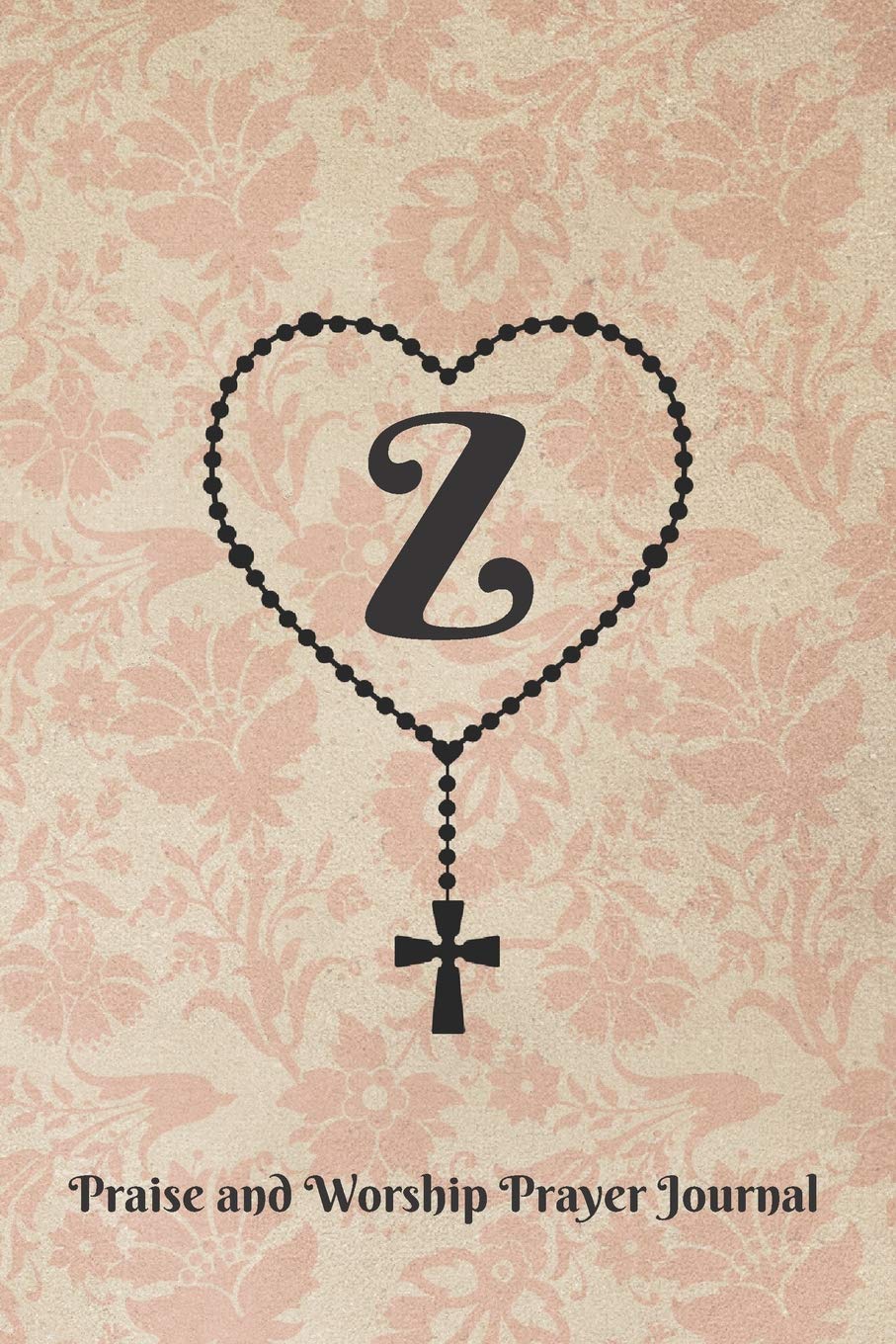 Buy Letter Z Personalized Monogram Praise And Worship Prayer Journal Rosary Cross Heart Shaped Rosary Beads With Cross On Antique Floral Wallpaper Pattern In Rose Beige Bible Study Notebook Book Online