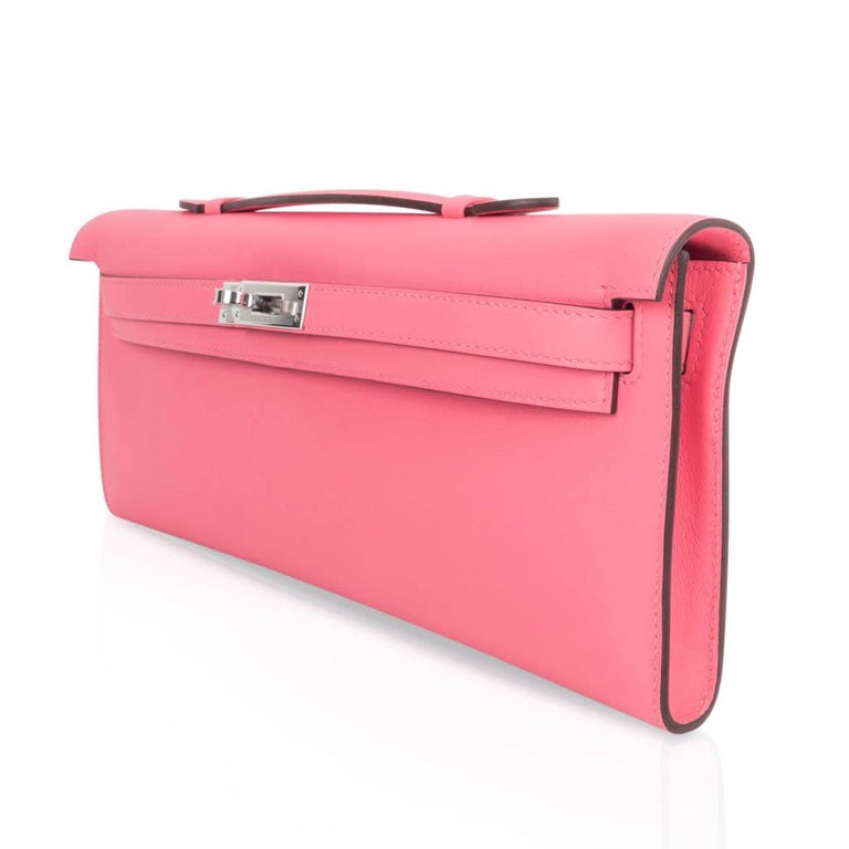 Hermes Kelly Cut Bag Pink Rose Azalee Clutch Swift Palladium Hardware New For Sale At 1stdibs