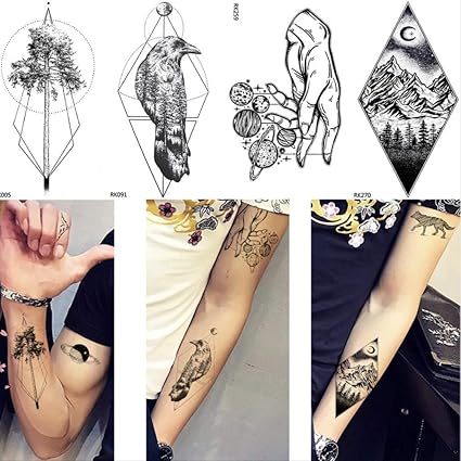 Yyydl Hombres Impermeable Cuervo Tatuaje Brazo Geometrico Tronco Tatuaje Temporal Mujeres Pico Tobillo Pegatinas Marioneta Linea Estrellas Tatuajes Falsos Luna 10 5 6 Cm 8 Piezas Amazon Es Belleza