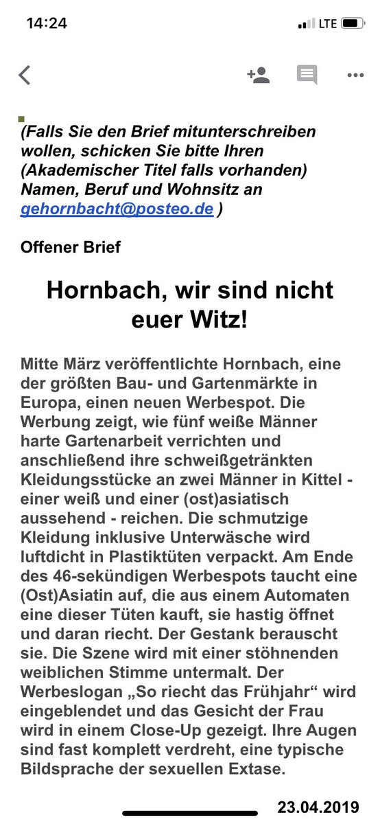 Rice And Shine V Twitter Aktivist Innen Rund Um Die Choreografin Olivia Hyunsin Kim Haben Einen Offenen Brief Gegen Die Hornbach Werbekampagne Geschrieben Wenn Ihr Unterschreiben Wollt Meldet Euch Unter Der E Mail Adresse Unten