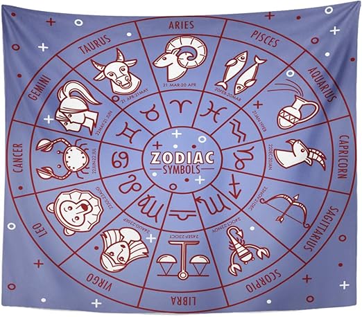 Amazon Com Emvency Tapestry Astrological Blue Aquarius Zodiac Horoscope Signs With Dates On Star Map Aries Astrology Home Decor Wall Hanging For Living Room Bedroom Dorm 60x80 Inches Home Kitchen