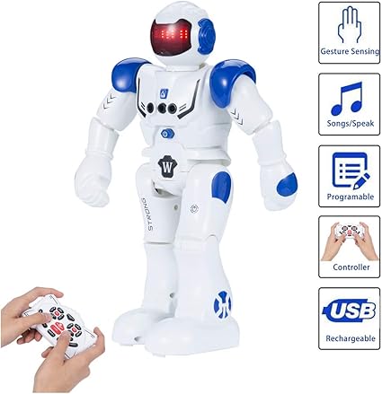 Amazon Com Senyang Remote Control Intelligent Robot Toy Programmable Interactive Gesture Sensing Robot Led Flashing Eye Dancing Walking Singing Smart Robotics Rechargeable Battery Gifts For Kids Blue Toys Games