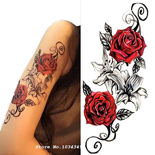 Amazon Com Zokey Diseno Original Impermeable Tatuaje Temporal Pegatinas Pequenas Rosas Frescas Mariposas Pintada A Mano Realista Division Beauty