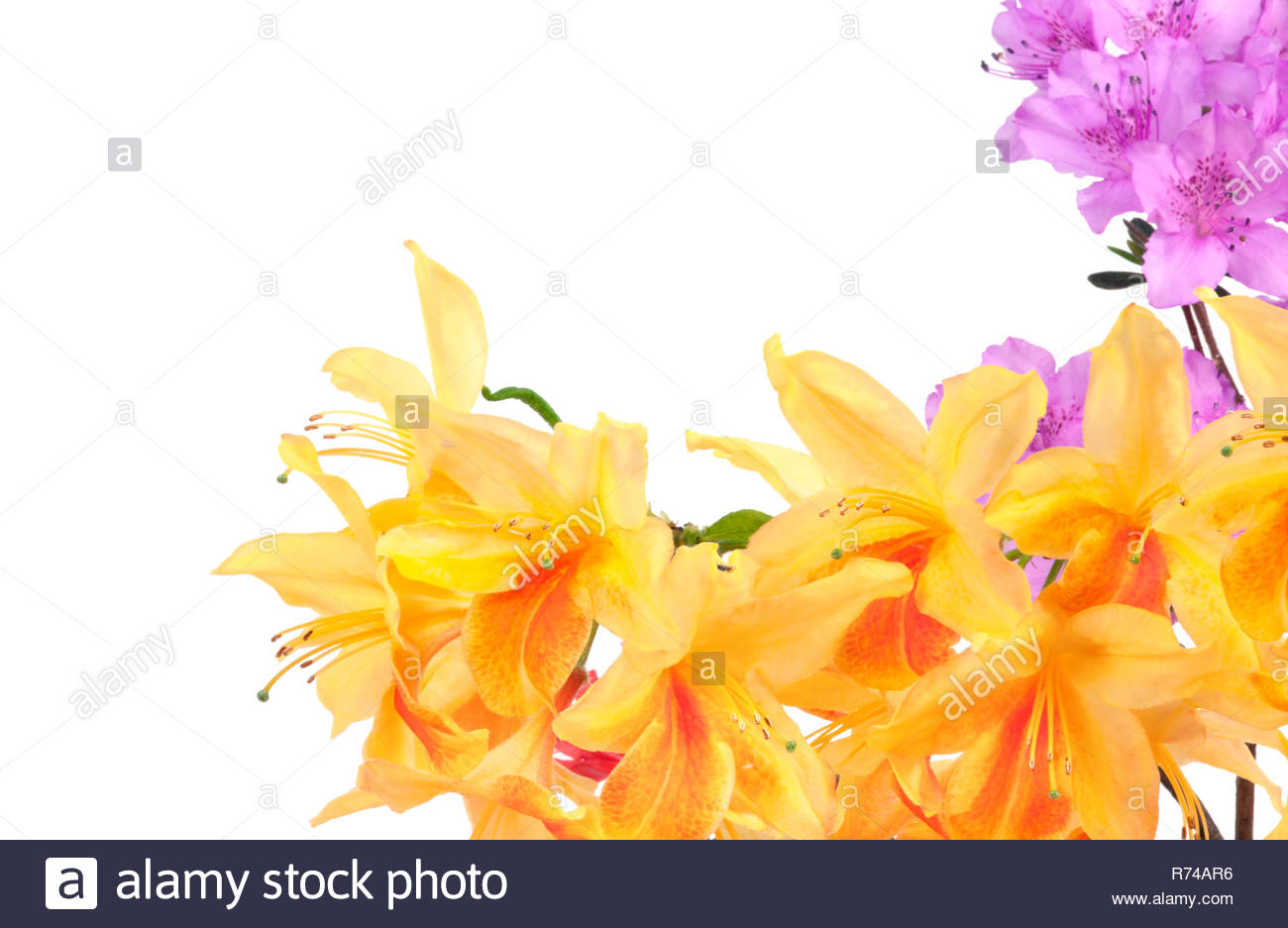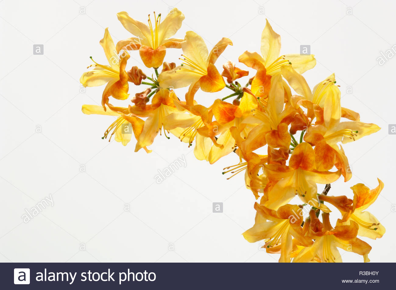 Gelbe Japanische Azalee Isoliert Auf Weissem Hintergrund Selektive Konzentrieren Bundel Viele Helle Gelbe Farbe Der Blumen Stockfotografie Alamy