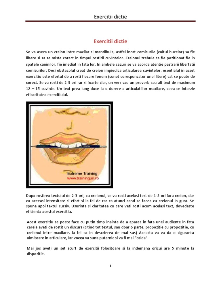Exercitii De Dictie Tema 2 Lecţia De Dicţie