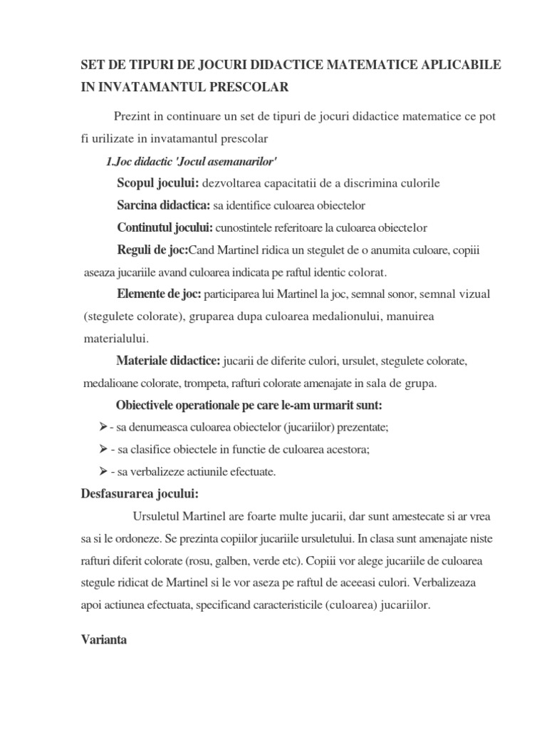 Jocul Didactic Matematic De La Gradinita La Scoala Burca Anisoara