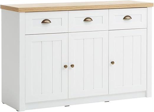 Jysk Markskel Aparador De 3 Puertas Color Blanco Y Roble Amazon Es Hogar